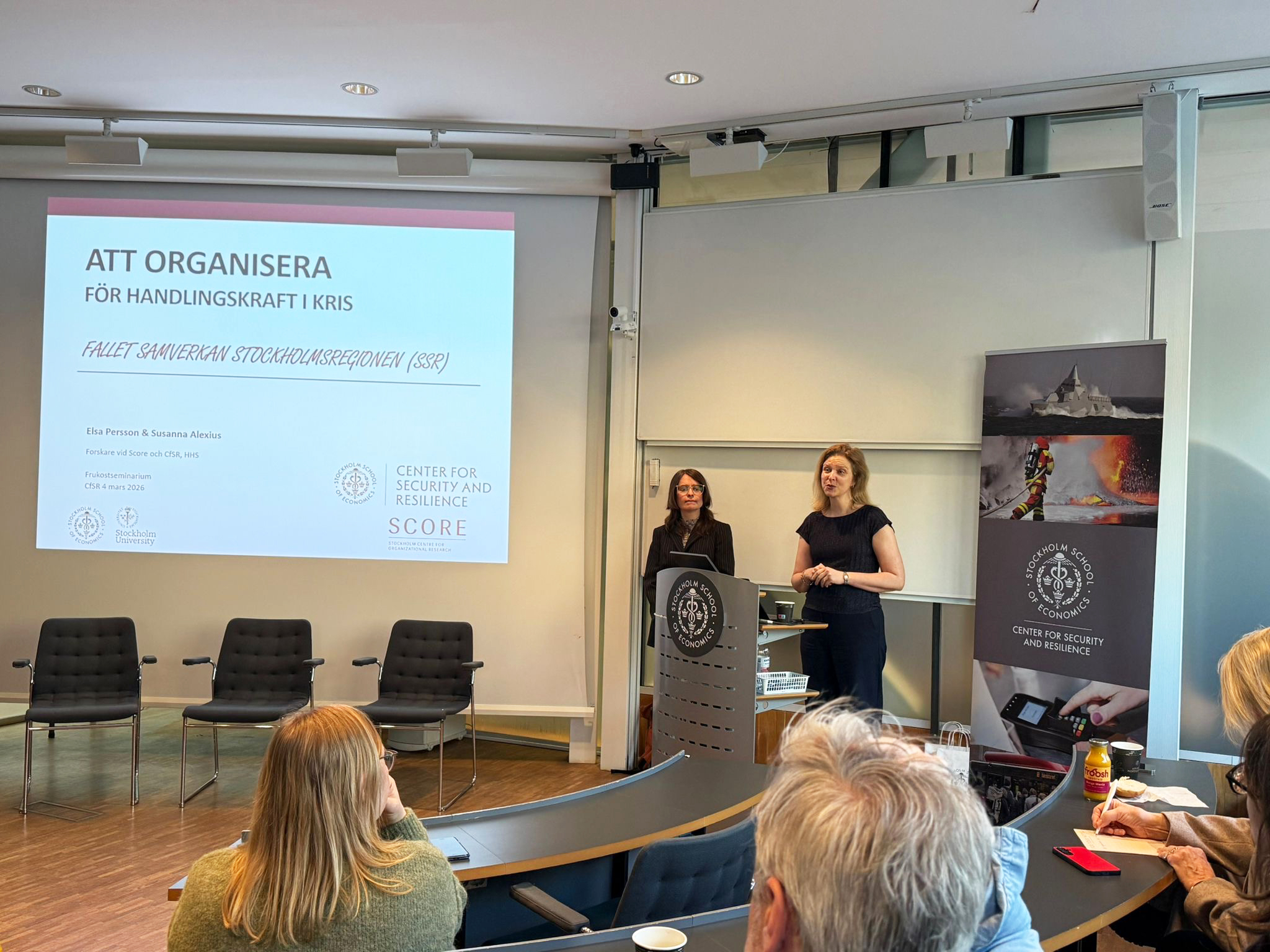 The event presented new research on Samverkan Stockholmsregionen (SSR), a regional collaboration network that brings together 37 public organizations in Stockholm County to coordinate crisis preparedness.