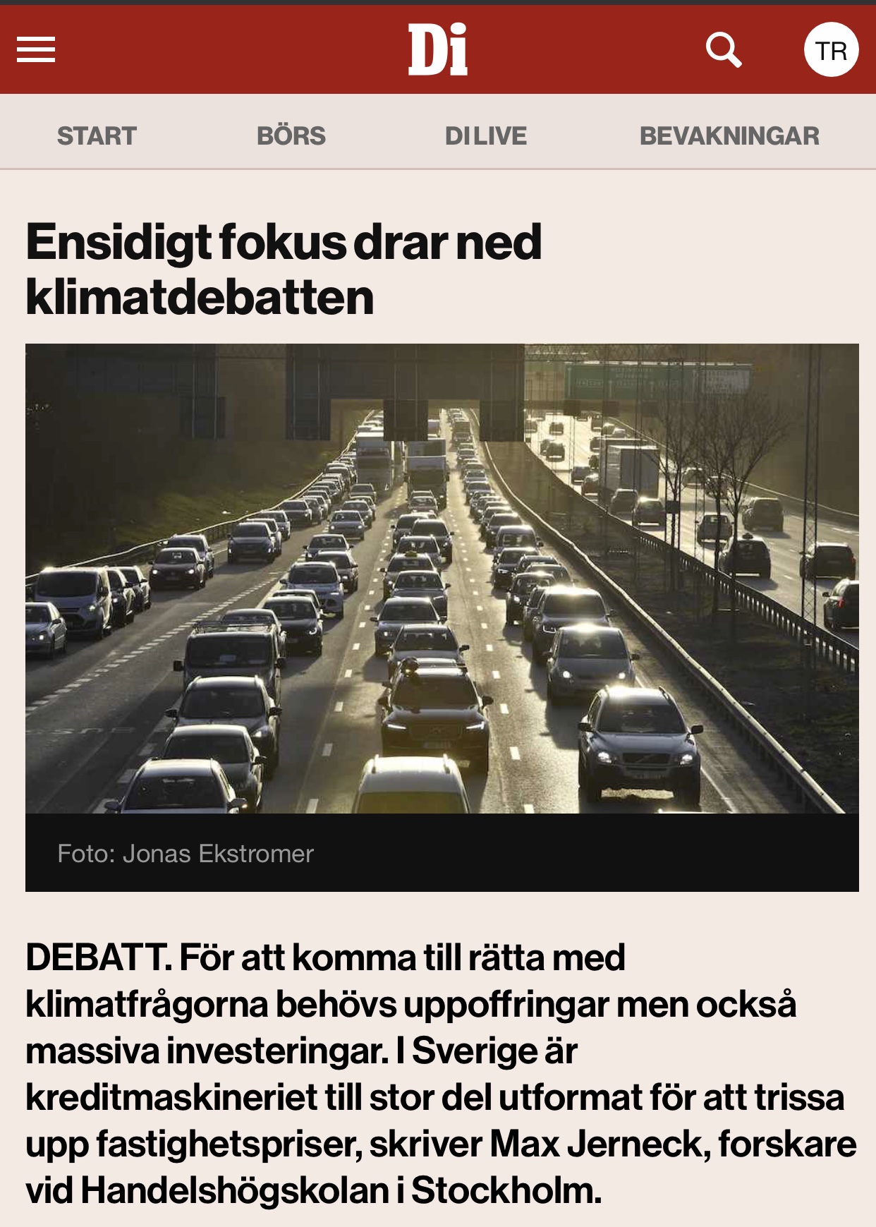 Misums Max Jerneck på DI debatt: Ensidigt fokus drar ner klimatdebatten