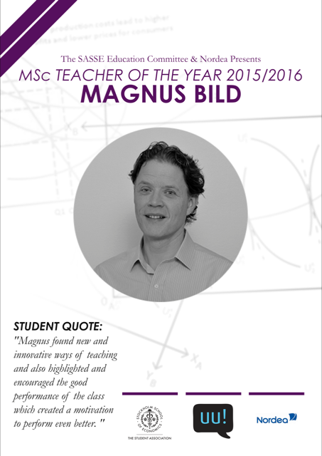 Magnus Bild has been appointed MSc Teacher of the year 2015/2016 by the SASSE Education Committee!