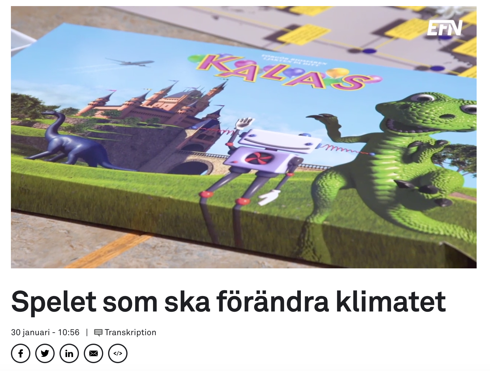 Konstnärerna Lars Arrhenius och Eric Ericson har skapat ett sällskapsspel om klimatet. Spelet handlar om klimatförändringar och konsumtion och om hur vår livsstil förstör jorden. Den 17 januari medverkade konstnärerna i ett samtal om klimat och spelteori på Handelshögskolan i Stockholm. Tinni Ernsjöö Rappe som är kommunikationsansvarig på Misum, säger att spelteori är något som man har börjat prata mer om för att kunna använda sig av i klimatfrågan. Tore Ellingsen som är professor i nationalekonomi på Handelshögskolan förklarar att spelteori handlar om konflikter och samarbete, och en stor del om sociala dilemman.