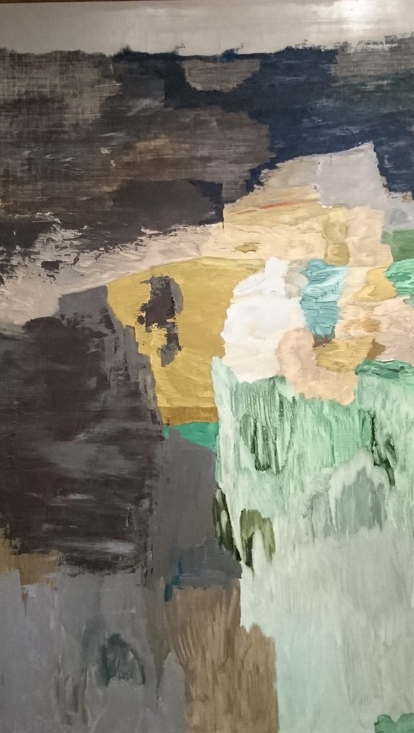 The paintning Riverbed was part of an exhibition at Stephen Friedman Gallery in 2016 with the title "Röta, bråka, skäkta och häckla", which is Swedish for the four stages of the linen-making process, and is left intentionally abstract for a non-Swedish speaking audience.