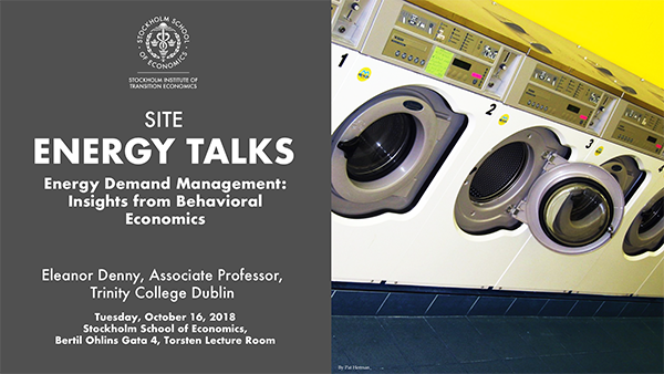 At SITE Energy Talks 2018 – Energy Demand Management: Insights from Behavioral Economics on October 16, Eleanor Denny, Associate Professor at Trinity College Dublin, will discuss which factors are salient in consumers’ decisions, the relative importance of these factors and how these factors change by consumer group and product type.