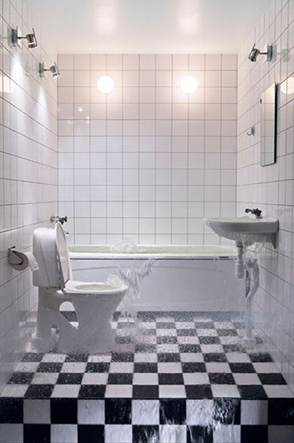 Installation med översvämmande badrum intar Handelshögskolan