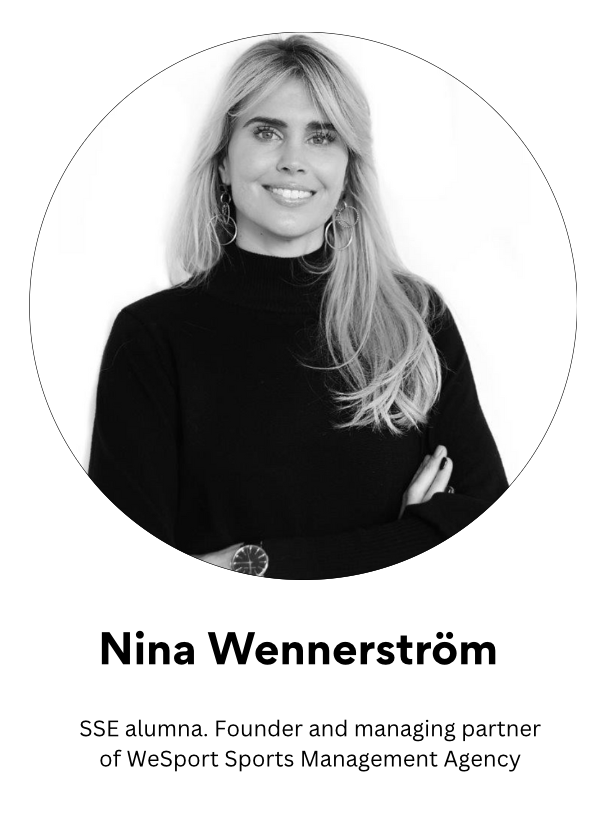 We are excited to welcome you to another After-Work session with SSE alumna Nina Wennerström, founder and managing partner of WeSport Sports Management Agency. Nina will share her insights into the power and potential of supporting and sponsoring sports talents. How does it work? What results can you expect? How does it compare to marketing spend on influencers and influencer networks? What effect does it have on society as a whole? Nina will guide us through the different aspects of strategic partnerships with athletes while telling us about her story after graduating from SSE.